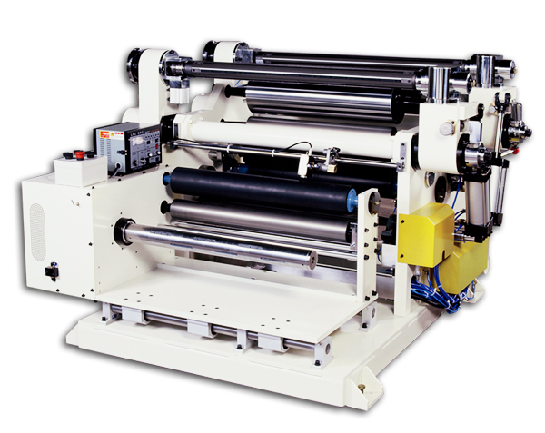 본 기종은 모던기종에 사용되는 범용 SLITTER로서 소폭으로 크게 감을 수 있는 Slitter 입니다. 1개의 축을 받침으로 하여 상호 1개씩 Touch 되면서 Rewinder되는 형식이고 Powder Clutch에 의한 매감속장력 조절이 되게 설계되어 있습니다.